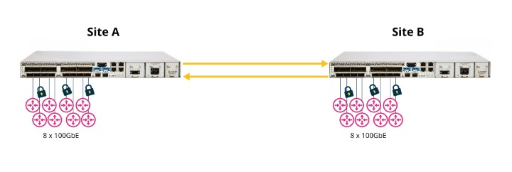 Figure 2: Encryption over 4x200G PTP link using ES-2000T Transponder